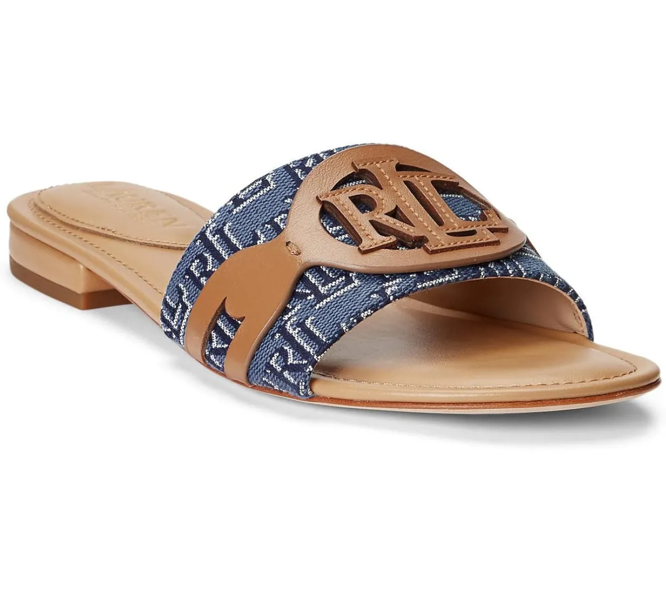 - Lauren Ralph Lauren Alegra Monogram Jacquard Slide Sandal Denim Blue/Buff 8.5 B (M)